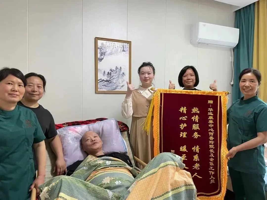看到父親開朗的笑顏、從消瘦到有肉肉的身體、逐漸穩(wěn)定的血糖和血壓,作為女兒的小田的也慢慢覺得放心和慶幸。放心的把父親放在華遠(yuǎn)康養(yǎng)中心照料,慶幸自己當(dāng)初的選擇沒有錯(cuò)。于是在天朗氣清的四月,她帶著一面紅彤彤的錦旗敲響了院長(zhǎng)辦公室的門。